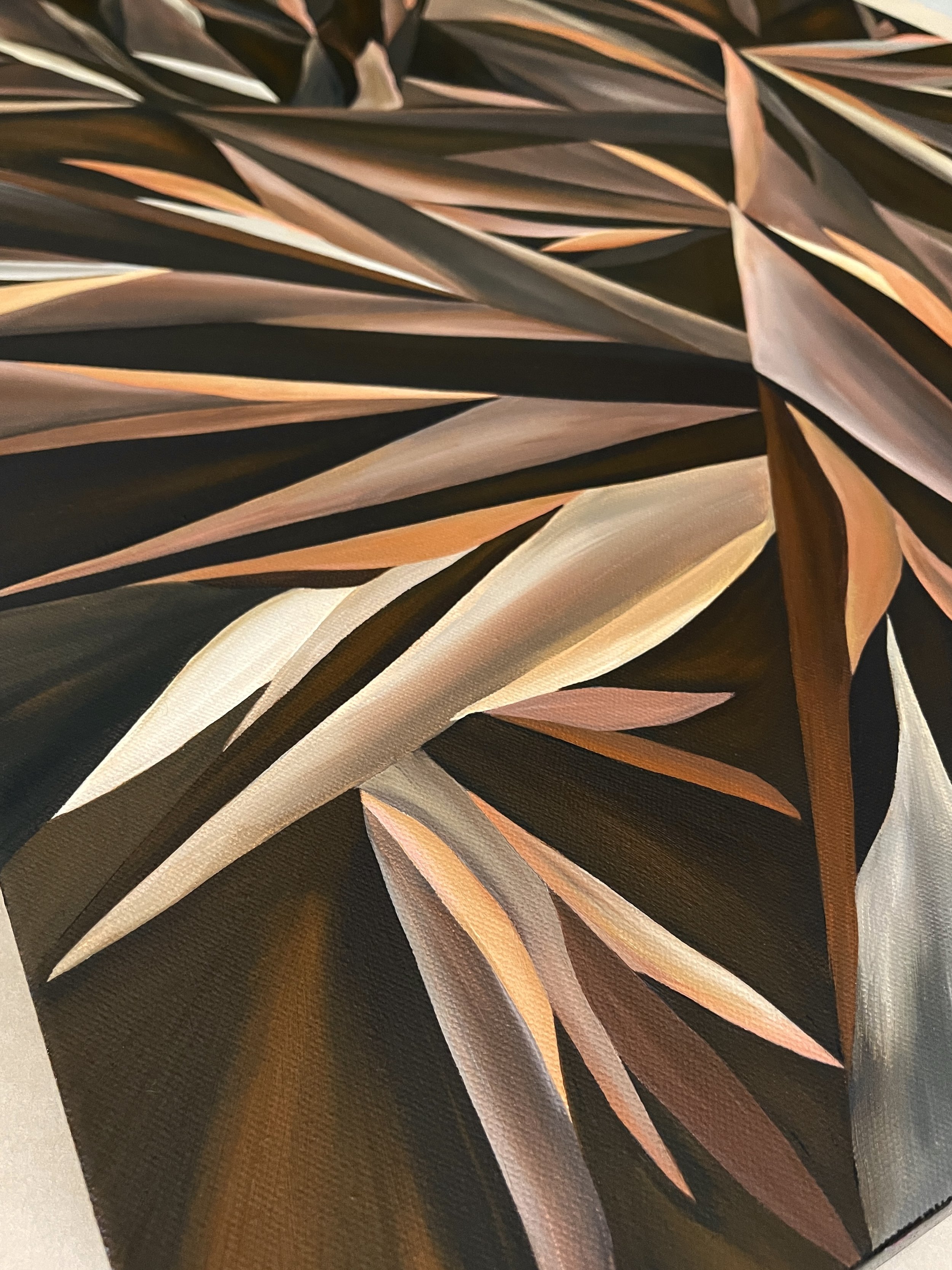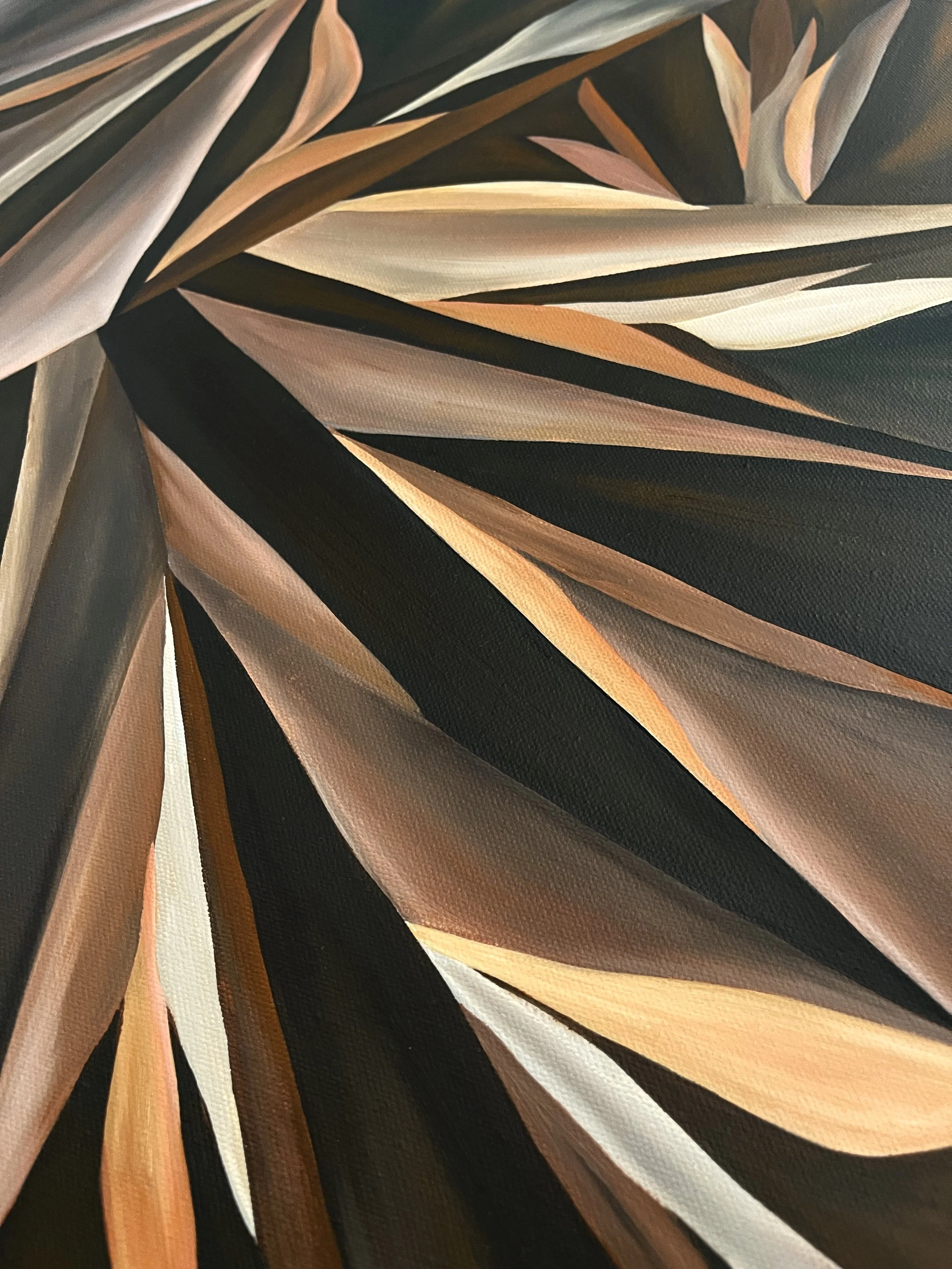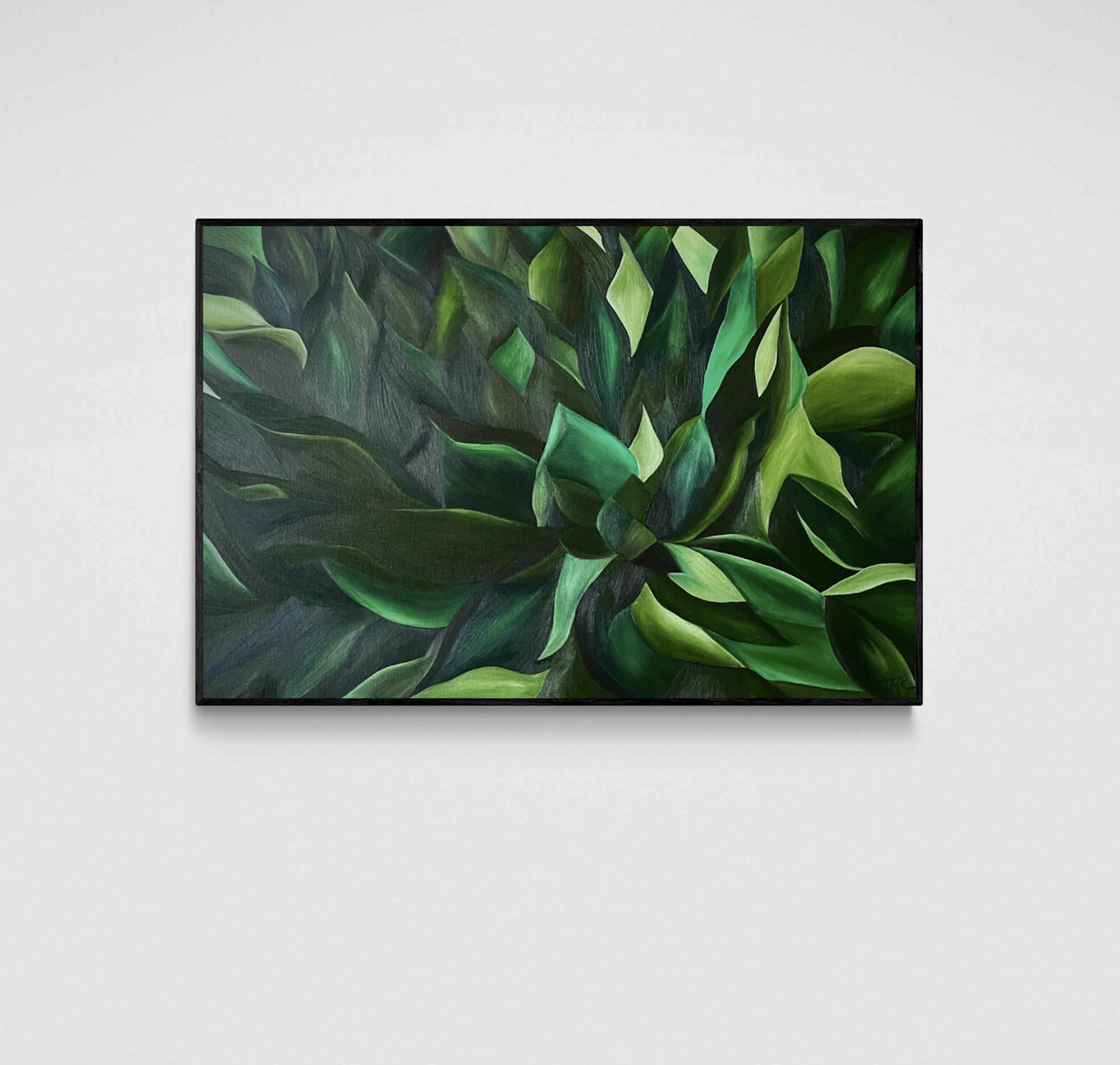 “My background in fashion trained me to understand colour, form, and visual systems - My painting practice extends that language into fine art, where I explore structure, rhythm, and organic growth.”